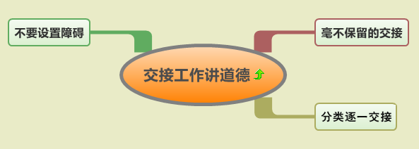 把工作中形成的经验教训毫不保留的交接给继任者,把完成的与未完成的工作分类逐一交接,不要设置障碍,使其迅速进入工作角色。