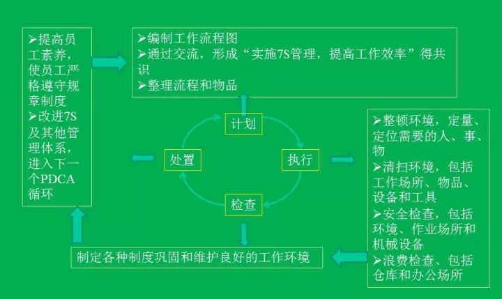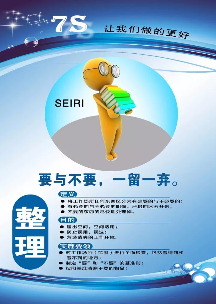 经常性地进行工作整理、整顿、清扫工作,并对以上三项进行定期与不定期的监督检查措施。方法有: