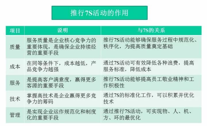 “红牌作战”:红牌作战贯穿整个7S管理的实施过程中。红牌是用红色的纸制成的7S问题揭示单,表示警告、危险或不合格。红牌作战的目的在于,找出需要改善的事物和过程,通过增加或减少红牌,发现问题,解决问题。