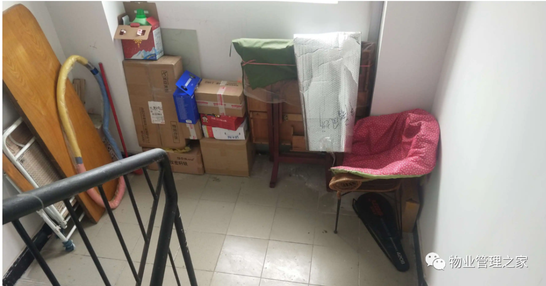 原本干净整洁的楼道堆满了杂物,不仅影响了颜值,还容易给人留下小区内脏、乱、差的坏印象,影响小区品质。