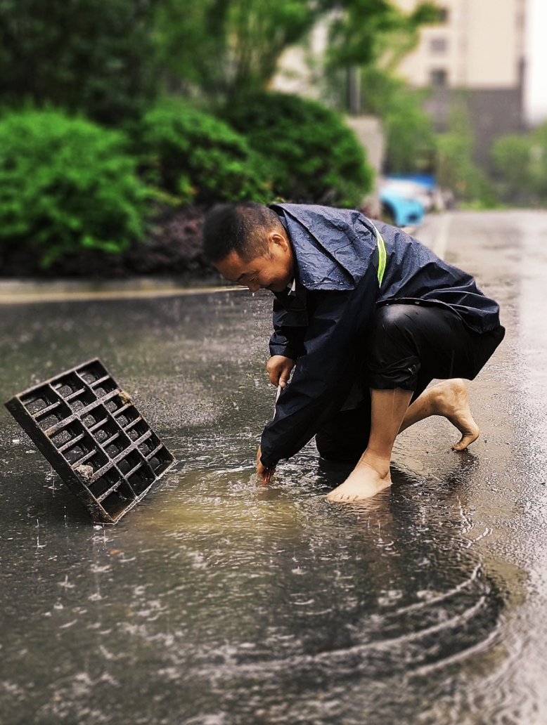 暴雨转小,大风过后,物业人的工作还远远没有结束,他们需要尽快打扫排水沟集聚的各种垃圾和树叶,疏通下水道......暴雨不止,物业人不歇!