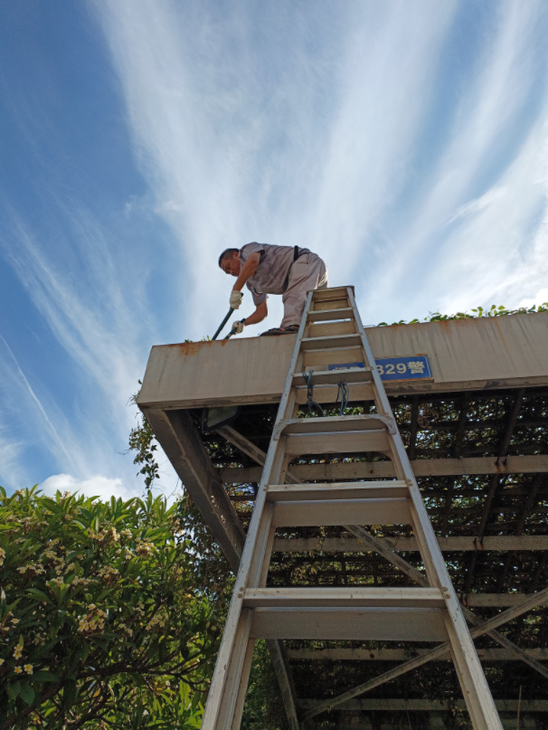 高空楼顶,物业工程师傅手持工具,在一方立锥之地上,奏起了一曲匠心之舞,只为让业主的家园更安全美观。