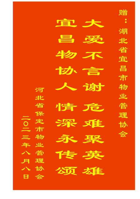 ——抗洪赈灾先进事迹巡礼! 2023年受台风“杜苏芮”影响,一场百年一遇的特大暴雨突袭京津冀,保定地区受持续强降雨与洪水叠加影响,河流水位暴涨,堤坝溃溢、城市内涝、灾情频发,物业管理区域地下室被淹,设备设施受损,居民生活面临停水断电的困境,涿州受灾严重,频频告急。危难时刻,全市物业服务企业在当地各级政府的统一指挥下,高度重视、快速反应,不畏艰难、果断处置,各企业上下一心,抛小家顾大家,生死坚守,奋勇拼博在最危险的汛情一线,采取有效措施,有力有序组织员工和驻地群众抗洪救灾,尽全力将广大群众生命财产损失降到最低,演绎了无数可歌可泣的感人故事,以实际行动谱写了一曲曲壮丽的抗洪救灾赞歌!山河有恙,人间有情,带头引领,彰显榜样力量河北省物业管理行业协会在暴雨后的第二天就向全省物业管理行业发起了倡议书,号召各地市行业组织积极参与到抗洪救灾公益活动中来! 8月6日,河北省物协无偿捐赠的救灾物资50台污水泵到达灾区一线(涿州30台,保定20台)。河北省协领导用善举诠释了人间大爱,爱心助力在行业间火热传递,影响更多的爱心志愿者加入到帮助灾区群众的爱心团队中来,助力灾区度过难关! 8月8日,邢台市物业服务行业协会会长袁海泉,副会长李晓霞率队行驶几百公里,将无偿捐赠的救灾物资(84 消毒液(30瓶/箱):200 箱;84 消毒液(3.7KG*4桶/箱):2 箱;二氧化碳消毒泡腾片(0.75*100片*100瓶/箱):2 箱;酒精(2.5升*10桶/箱):1 箱;医用防护服(50件/箱):2 箱;)及生活急需用品亲自送到保定汛情第一线。 8月16日,唐山市物业服务行业协会无偿捐赠的救灾物资30台单相无堵塞排污泵(型号:50WQ12-12-1.1)到达保定。 一方有难,八方支援,灾情牵动着全国物管行业的心8月10日,湖北省宜昌市物业管理协会秘书长张勇受协会李郑云会长的委托,主动与保定市物业管理协会会长杨洪波取得联系,通过保定物协精心安排,直接向涿州市住房和城乡建设局属地物业企业援助了大量消毒液、清扫冲洗设备、抽水泵等紧缺物资。 非常时期彰显大爱情怀,无偿捐赠更显拳拳之心8月16日,湖北省黄冈市英山县物业服务行业协会将本地15家物业服务企业及个人捐赠的救灾物资(喷雾器(3WBS-16型):30个;84消毒液原液(10KG/桶):100桶;单相污水潜水电泵(WQD7-12-0.75):12个)发往保定市物业管理协会。收到物资的当天,保定市物协秘书处副秘书长,工会主席彭秀臣组织人员将物资送往涿州、易县等受灾严重地区。 面对灾情,保定市物业管理协会发岀号召,紧急部署,要求各会员单位加强组织领导,认真落实汛期排查,把坚决防止人员伤亡和业主财产损失作为救灭工作的重中之重,切实做好应急值班值守、雨情预警预报等工作,全力保障群众生命财产安全。保定市物业管理协会捐资购置救灾物资(84 消毒液(25KG/桶):100桶;84 消毒液(10KG/桶):100桶;不锈钢混流泥浆泥沙式污水泵:2 台),并于8月9日、15日、16日、17日为保定市物业服务企业进行发放。8月14日带物资前往易县、涿州慰问;8月17日前往安国慰问。 保定市物协传承着自力更生、团结友爱,顽强拼搏,自强不息的行业精神。 灾情就是命令,险情就是战场;与洪水博弈 救民于危难,这些仅仅是此轮强降雨过程中抗洪救灾的一些镜头缩影。致敬暴风雨中最勇敢、最可爱的人。