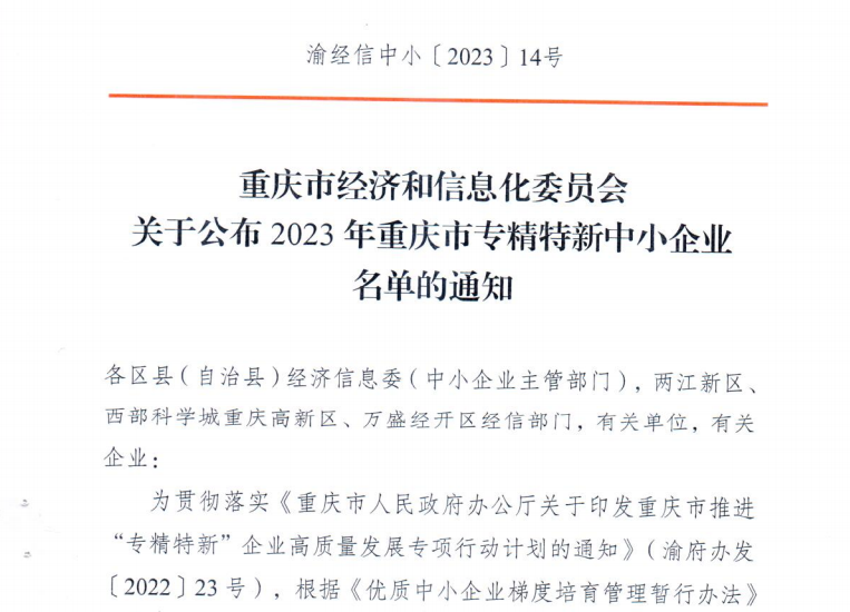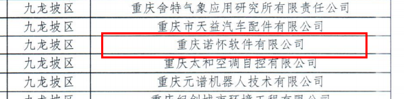 据重庆市经济和信息化委员会官方网站6月25公布的 《关于公布2023年重庆市专精特新中小企业名单的通知》内容显示,重庆诺怀软件与重庆车立方智能、重庆合众汽车、西科水运、重庆钢铁集团设计院等多家企业入选2023年度重庆市专精特新中小企业名单。
