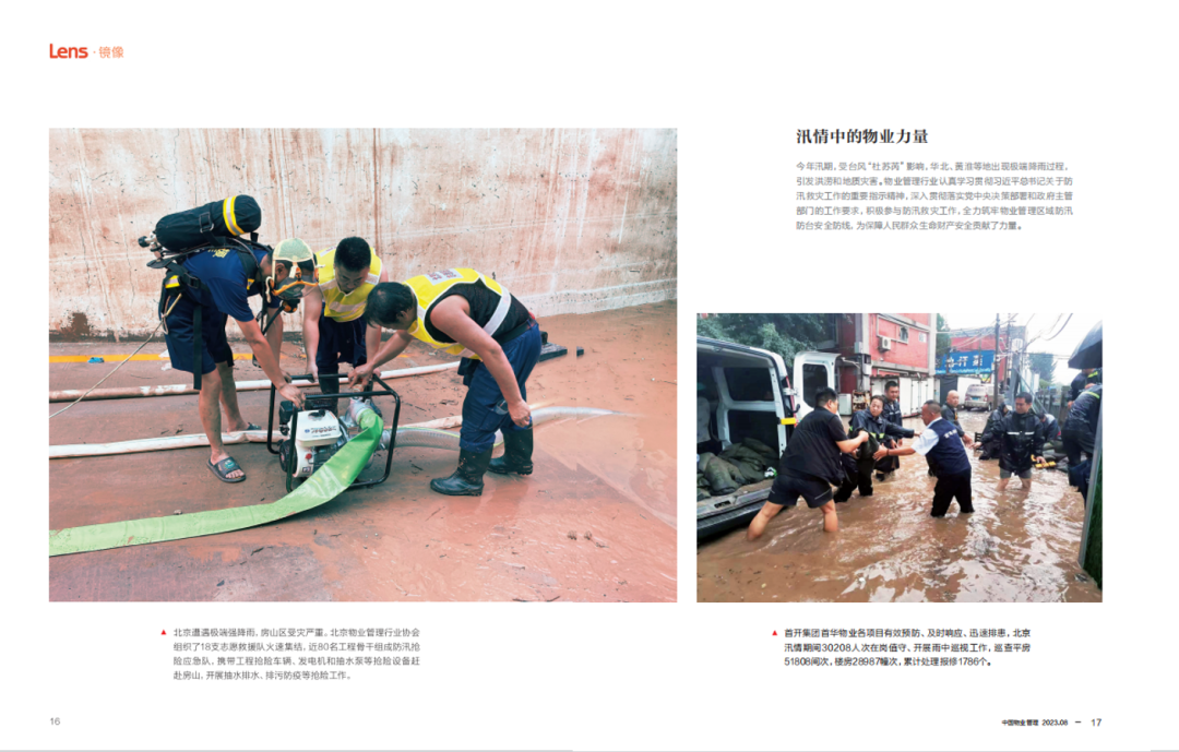 今年汛期,受台风“杜苏芮”影响,华北、黄淮等地出现极端降雨过程,引发洪涝和地质灾害。物业人积极参与防汛救灾工作,全力筑牢物业管理区域防汛防台安全防线,为保障人民群众生命财产安全贡献了力量。