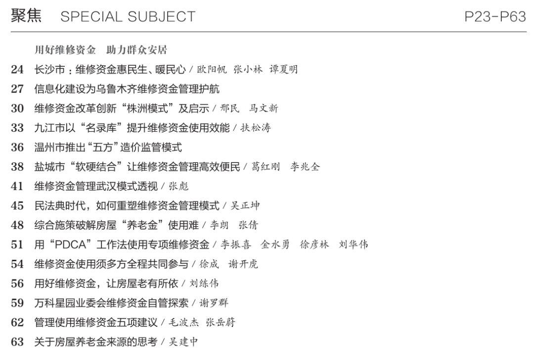 围绕房屋维修资金的筹措、归集、监管、合规使用和保值增值等方面,本期聚焦栏目分享了这些方面的好经验、好做法和好模式。