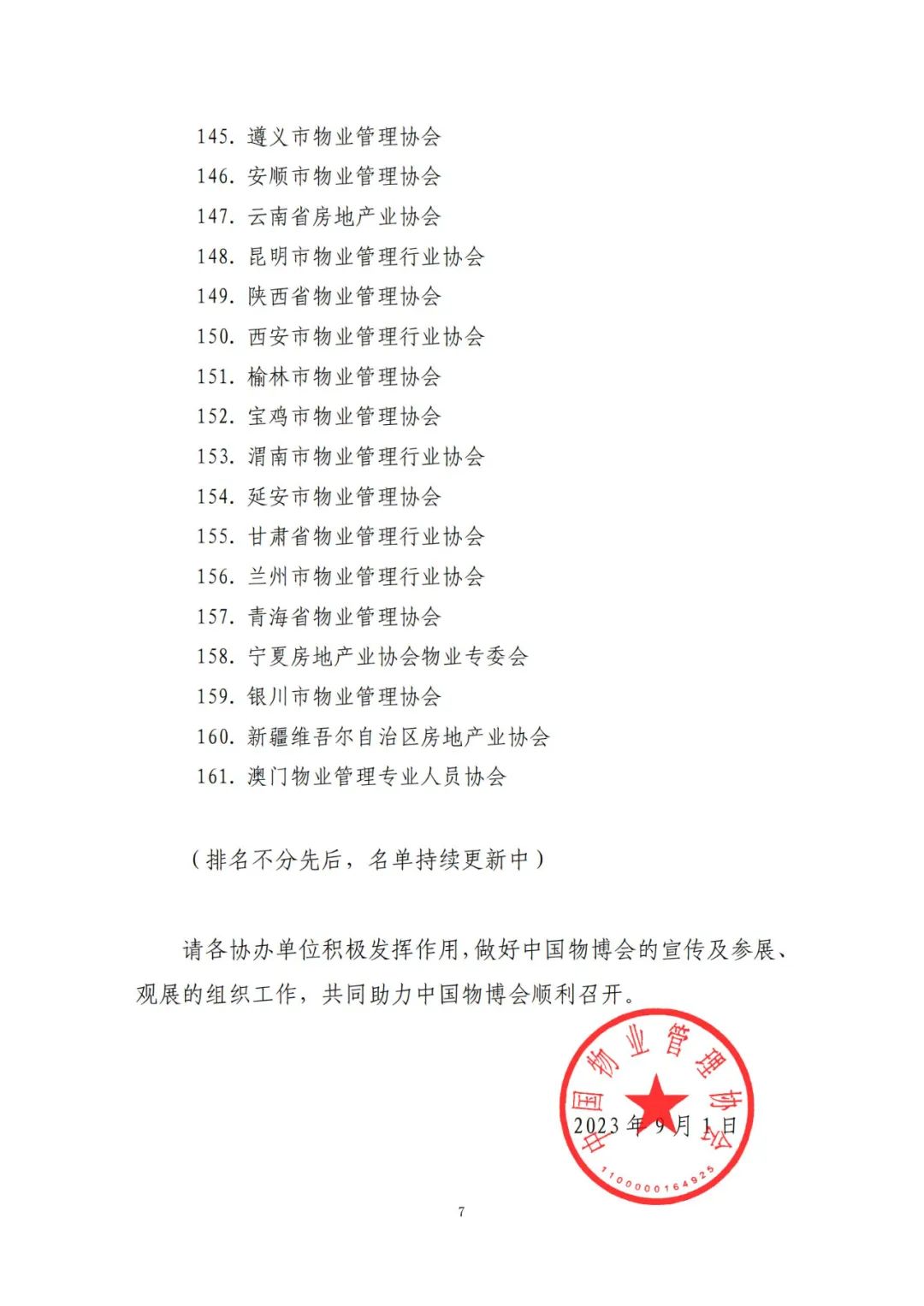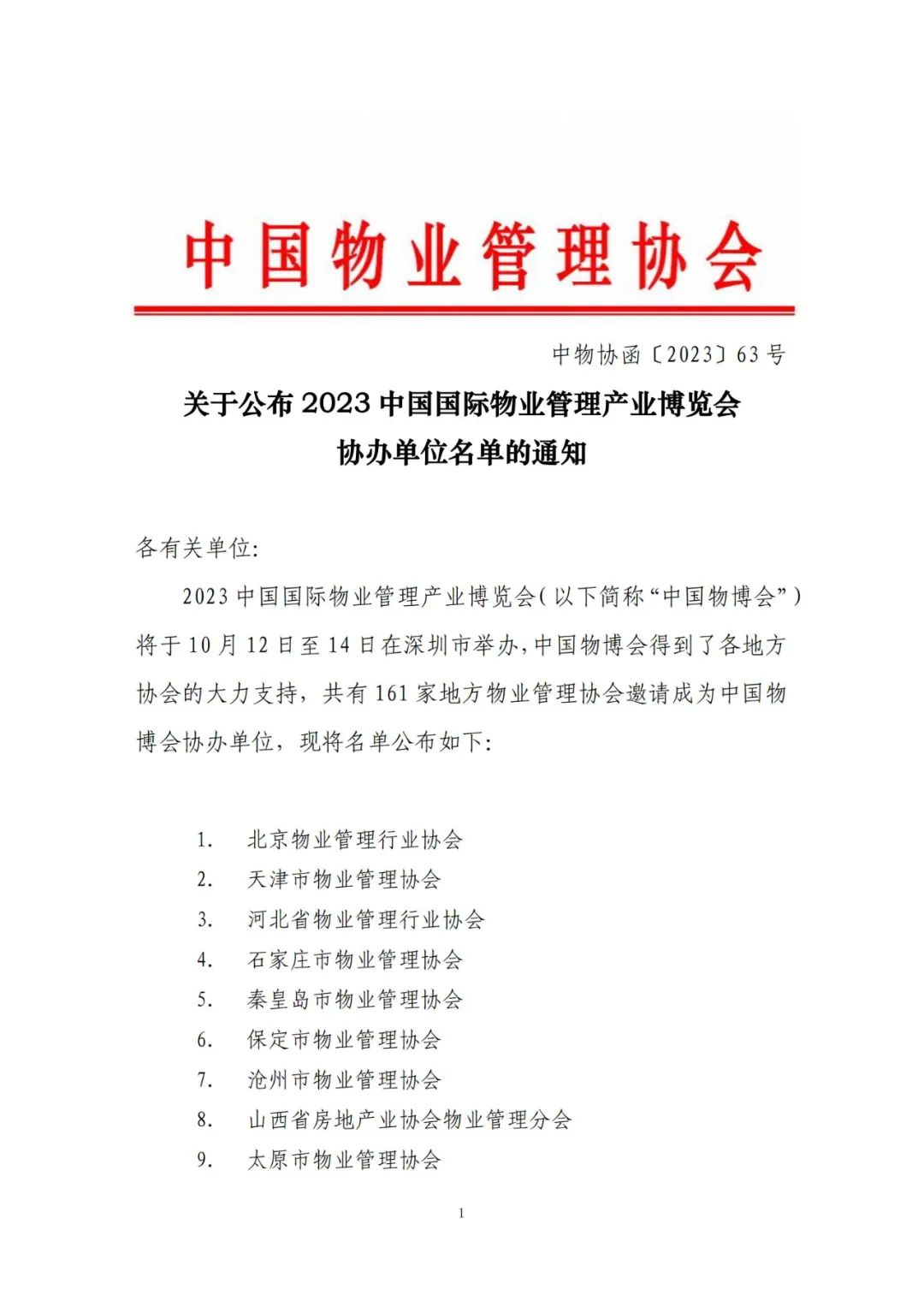 关于公布2023中国国际物业管理产业博览会协办单位名单的通知