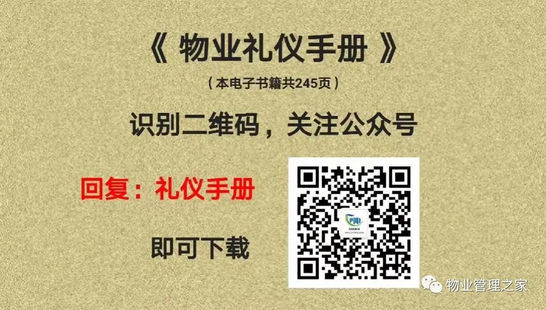 👇点击阅读原文,百部免费资料👇 保安日常服务规范 一 工作态度 二 服务态度 三 仪容仪表 四 言行举止 五 礼节礼貌 六 值班制度 七 保安员交接班管理标准及作业规程 八 内务卫生标准 物业保安的职业礼仪攻略 一、在着装方面,保安要注意几点:除不宜或者不需要着装的情形外,在工作时间必须着保安制服,因私外出时应着便服;着保安制服时,要按规定佩戴保安标志;男性保安不留长发、大鬓角和胡须,女性保安发辫不过肩;不染发染指甲,不化浓妆、戴首饰。 二、在岗位纪律方面,保安必须遵守物业单位内部的各项规章制度,对业主的生活,不随意打听、记录、传播;未经允许不动用业主物品和接受业主赠送的礼品。 三、在言行举止方面,物业保安还要会使用规范的职业用语,包括您好、请进、请讲、请稍等、请您出示证件、请您把车停好、请您登记、请问您找谁、抱歉、对不起、谢谢、再见等。 四、具体来说,根据物业保安的岗位不同,其职业礼仪的要求也有不同。 1、门卫:按时到岗,交接后换岗,坚守岗位不脱岗。保持个人仪表整洁,门岗周围环境清洁。注意观察人员进出情况,发现疑点应当及时询问,但语气要礼貌。 2、巡逻:发现业主、使用人在物业使用、装修过程中有违反国家和本市有关规定以及业主临时公约、业主公约行为的,要予以礼貌地劝阻、制止;对劝阻、制止无效的,及时报告小区经理。 3、车管:对违反车辆停放规定的业主进行礼貌地劝导并协助整改;发现车辆门窗未关,漏油、漏水等情况及时通知车主;按规定或合同约定收取小区车辆停放费用,出具正规票据,不可乱收费。 往期精彩回顾 ▶ 物业呼吁:楼上楼下邻居,请文明使用下水管道! ▶ 电梯有盲区!16个惨痛教训!请转业主群 ▶ 我是物业公司,下列问题找物业··· ▶ 自己买的车位,为什么还要交车位管理费? ▶ 一次说清!你交的物业费包括啥?不包括啥? ▶ 业主经常问的14个问题,《民法典》里有答案 ▶ 致业主:房子虽然是您的但是这10个地方绝对不能动! 1、免费下载 | 全套物业管理制度表格 2、免费下载 | 物业管理服务品质提升方案【8个PPT】 3、免费下载 | 向标杆物业学习!万科物业服务品质管理体系文件 4、免费下载 | 收藏!民法典与物业管理大全 5、免费下载 | 学习是最好的投资!从零开始学做物业经理【282页】 6、免费下载 | 值得学习!小区物业客服部运行守则【249页】 7、免费下载 | 实用!物业管理工作图表设计范例【287页】 8、免费下载 | 【超级全面】物业管理案头必备手册!含各部门职责、流程、表格 9、免费下载 | 学习!物业环境管理工作手册【112页】 10、免费下载 | 物业企业必备的51个制度和流程【280页】 11、免费下载 | 干货收藏!万科物业职能类管理表格【93个】 12、免费下载 | 干货!物业保洁管理读这本书就够了!【333页】 13、免费下载 | 物业标准化管理图示307页 14、免费下载 | 物业公司客服中心工作手册 15、免费下载 | 物业工程管理作业手册【185页】 16、免费下载 | 干货!项目前期物业管理投标文件【179页】 17、免费下载 | 物业安全管理!治安、交通、车辆、消防、应急管理与培训手册 18、免费下载 | 学习!物业保安主管365天管理笔记【含计划、总结、表格】 19、免费下载 | 干货!政府机关物业服务方案【102页】 20、免费下载 | 收藏!物业常用表格大全~拿来就用【142项】 21、免费下载 | 物业管理前期介入与承接查验十堂课【162页】 22、免费下载 | 超全:物业管理工程维修工作手册【97页】 23、免费下载 | 【干货PPT】物业客服部礼仪礼节培训! 24、免费下载 | 向标杆物业学习!万科物业管理实操案例 【37篇】 25、免费下载 | 完整版物业装修管理培训手册【收藏】 26、免费下载 | 万科物业品质管理、设备设施及安全督导标准【111页】 27、免费下载 | 物业管理员工培训课件110页!学习、培训好助手 28、免费下载 | 【干货PPT】融创物业秩序服务可视化标准93页 29、免费下载 | 【实用】物业管理服务费用成本测算模板 30、免费下载 | 【干货PPT】绿化养护培训大全113页—学习、借鉴! 微信 |电话:199 0636 8688 王老师 微信 |电话:188 0636 7288 李老师 全国客户服务热线:400 8899 681 扫描二维码加我微信 点击 “阅读原文” 百部免费物业资料