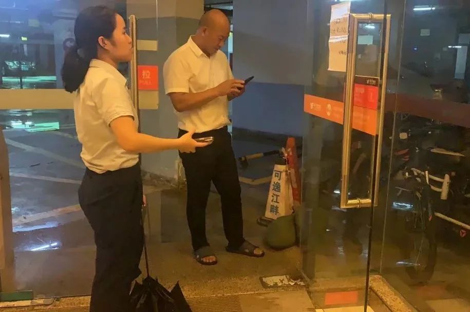 凌晨4时许,随着雨势升级,两道“防汛墙”被暴雨形成的洪水无情地冲垮,两名物业工作人员被洪水冲倒,28栋出口沙井盖也被洪水卷走了……尽管在此期间,服务中心多次拨打“119”和“三防办热线”反映排水不畅的情况,但由于现场情况实在太紧急了,一切都不能等,要想保障停车场里的车辆安全,必须主动采取应对措施。