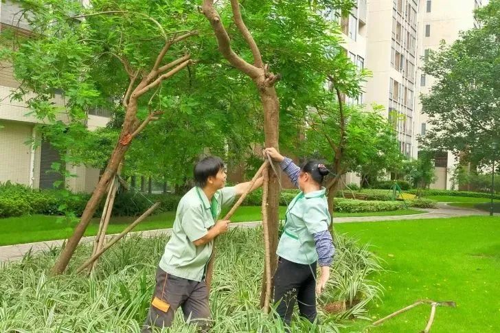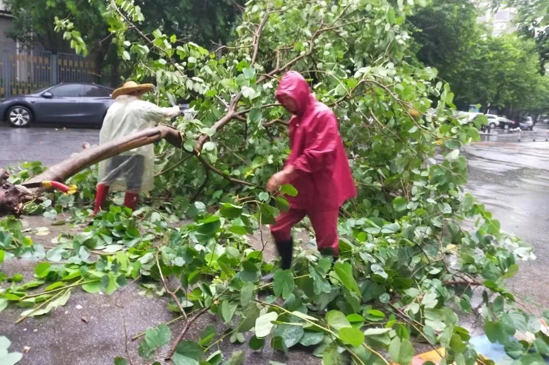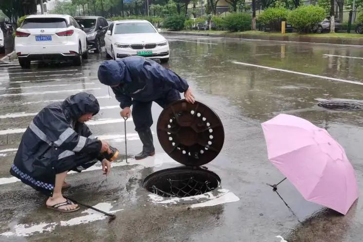 8日下午4时左右,雨势渐停。各条线物服人员各司其职,逐步开展园区环境恢复和设备运行维护。经过暴雨冲刷后,留下了一地落叶枯枝,保洁人员忙碌清理树叶残枝以及各排水口周围的垃圾和淤泥。