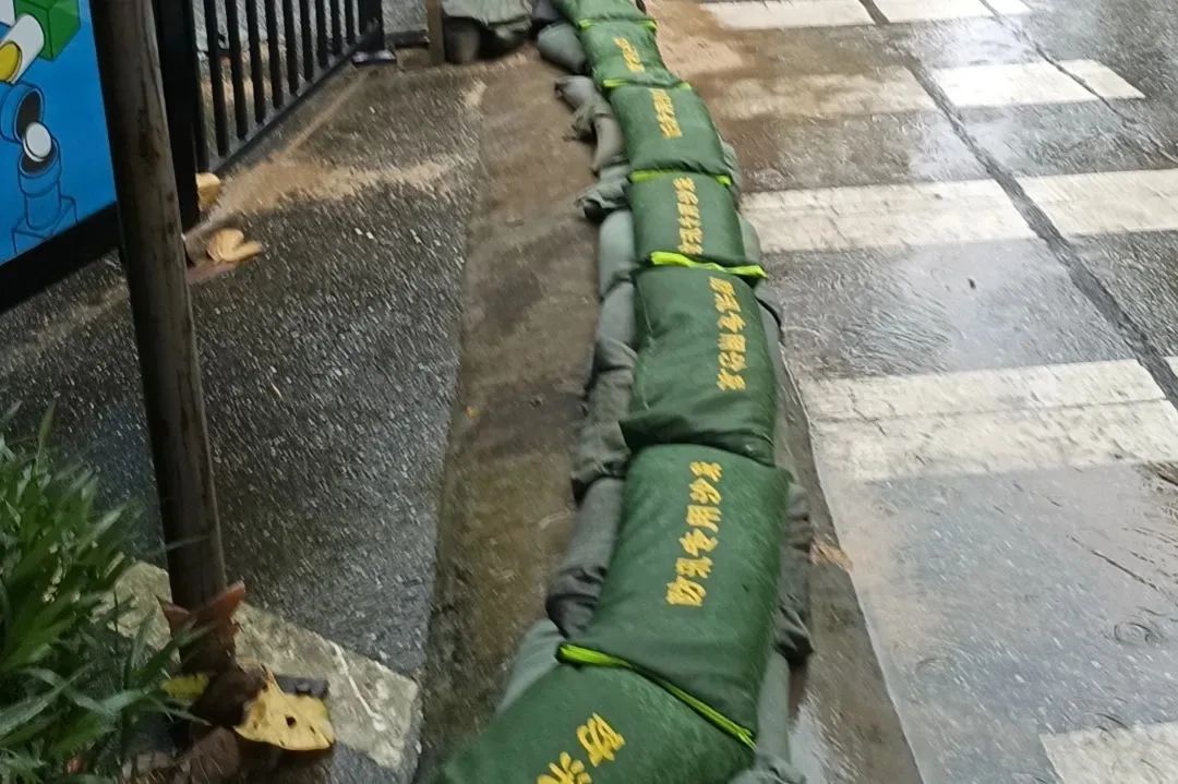 9月7日白天起,番禺区下起了中雨、局部大雨。可逸江畔早早就将沙袋、铁马、应急排水泵、水带、防汛沙袋、挡水板、铁锹等各项防汛物资储备到位,立即结合小区一、二、三期的地势高低,对各低洼地下车库入口合理配备沙包,预防雨水灌淹。