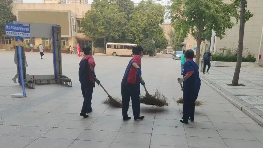 为迎接各地学子归来,圆方物业工作人员严阵以待,提前对校园卫生进行全面清扫,对各类杂物、垃圾进行彻底清理,确保不留卫生死角,不留清洁盲区,扎实做好开学前各项准备工作。