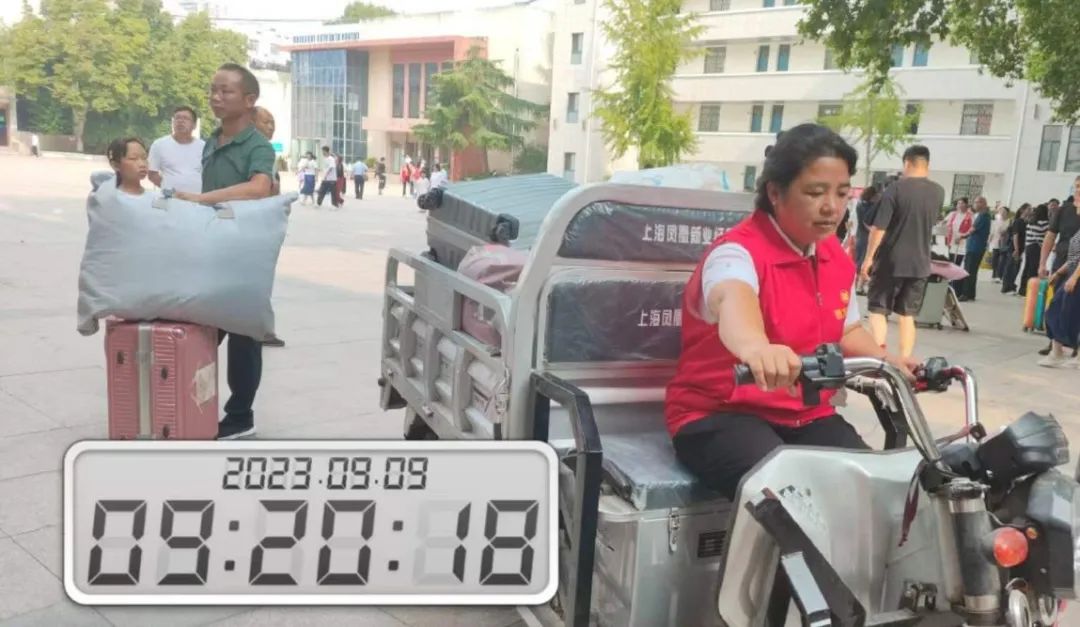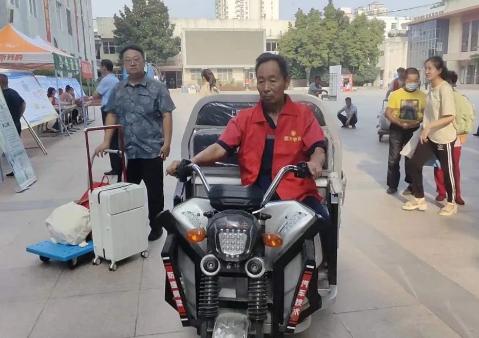 为方便学生搬运行李,圆方物业学校事业部各项目部为学生们准备了爱心三轮车,在校门口和宿舍楼之间来回往返,为学生们搬运行李,让学生和家长一到校园就能感受到来自圆方物业的暖心服务。