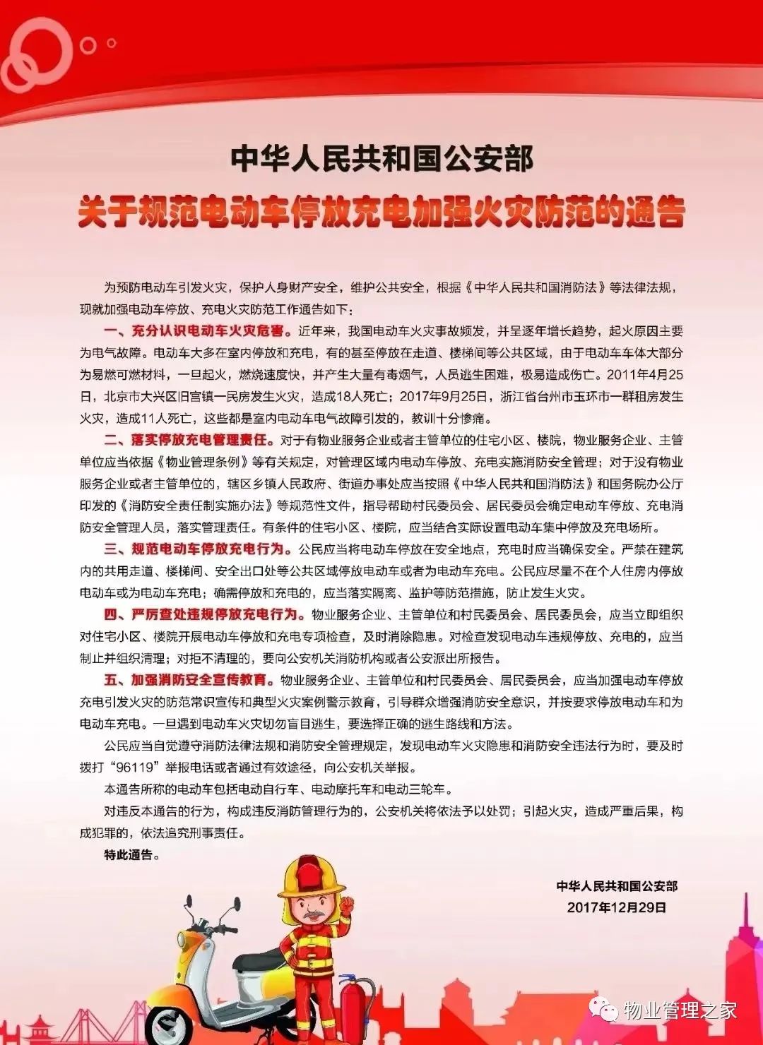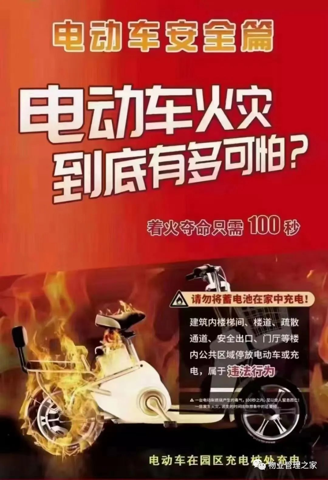 禁止电动车上楼,不在楼梯间、过道或者房间室内充电,禁止飞线充电。消除安全隐患,避免险情发生!请各位业主将电动车在指定场所停放或充电。