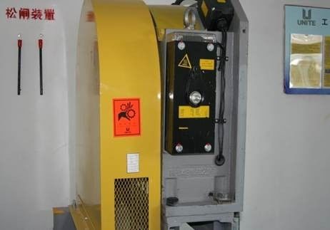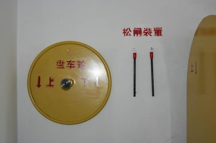 8、在电动机或飞轮上应有与轿厢升降方向相对应的标志。曳引轮、飞轮、限速器轮外侧面应漆成黄色。制动器手动松闸扳手漆成红色,并挂在易接近的墙上。