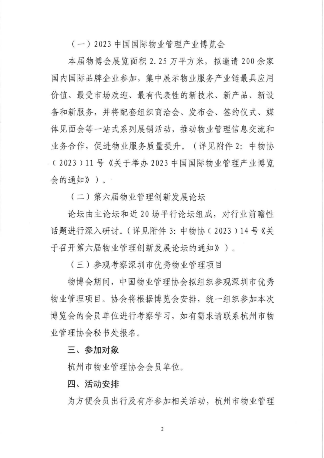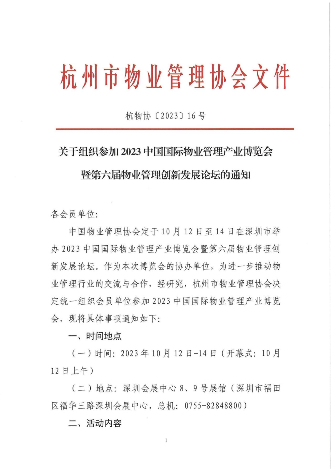 9月11日,杭州市物业管理协会(简称杭州物协)召开重点工作会议,部署协办2023中国国际物业管理产业博览会(简称中国物博会)相关工作。杭州物协副会长兼秘书长王宁主持会议,副会长唐俊杰、绿城服务品牌文化模块总经理刘兆亮、会员单位以及供应商负责人等二十余人出席会议。 杭州物协是2023中国物博会的协办单位之一。会议就中国物业管理协会即将举行的中国物博会进行了组织动员,重点围绕如何协力办好、参与好中国物博会展开了研讨。会上,各单位抒发己见,明确将联合打造“杭州馆”展览空间,共同展现杭州物业管理行业整体形象。 会议决定,杭州物协将大力动员全体会员单位积极参与中国物博会,通过在会员单位联络群中发布相关通知,将活动信息精准传达;将统一组织会员单位赴深圳观展、参加创新发展论坛等,了解物业管理行业的新技术、新产品、新动态,创新管理思路,扩展服务空间,助力行业高质量发展。同时,杭州物协将通过公众号、视频号等线上媒体渠道转发中国物博会相关信息,进行广泛宣传,调动各单位参与中国物博会的积极性,渲染活动热情氛围,尽最大努力协力办好2023中国物博会。