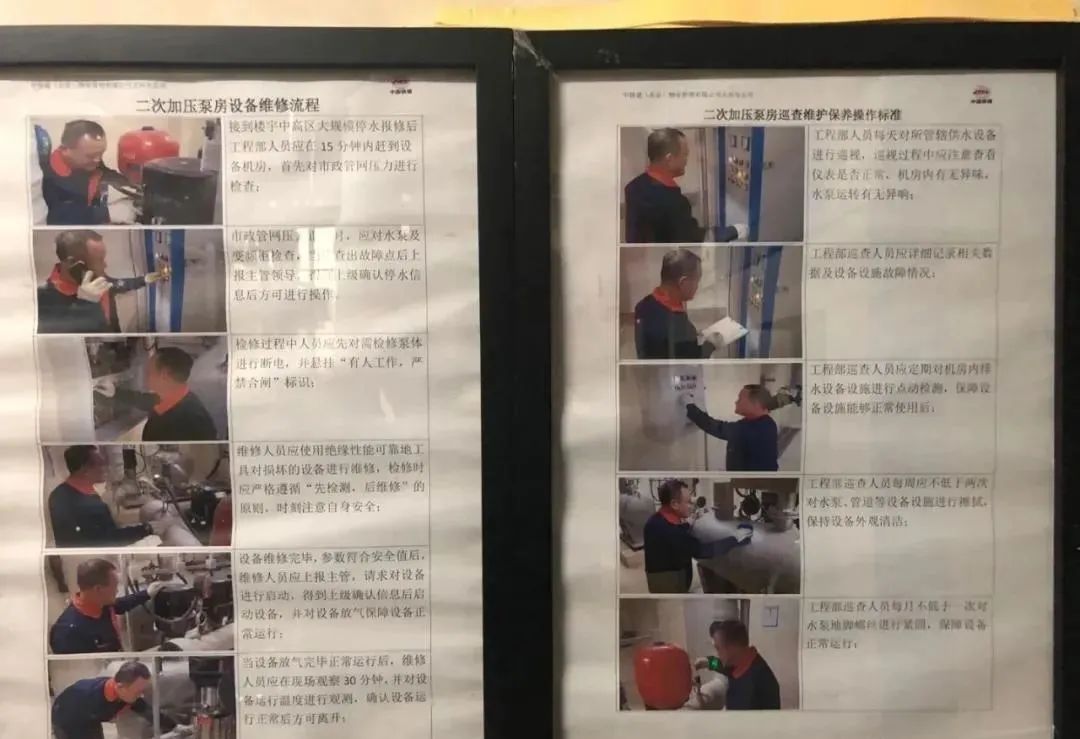 各类设备房管理规范、标准作业流程图和操作指南统一上墙,确保设施设备安全操作,保障工作人员的自身安全。