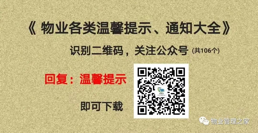 17、如果您的联络方式发生变更,请及时通知物业服务中心,避免重要或突发情况无法与您保持联系。