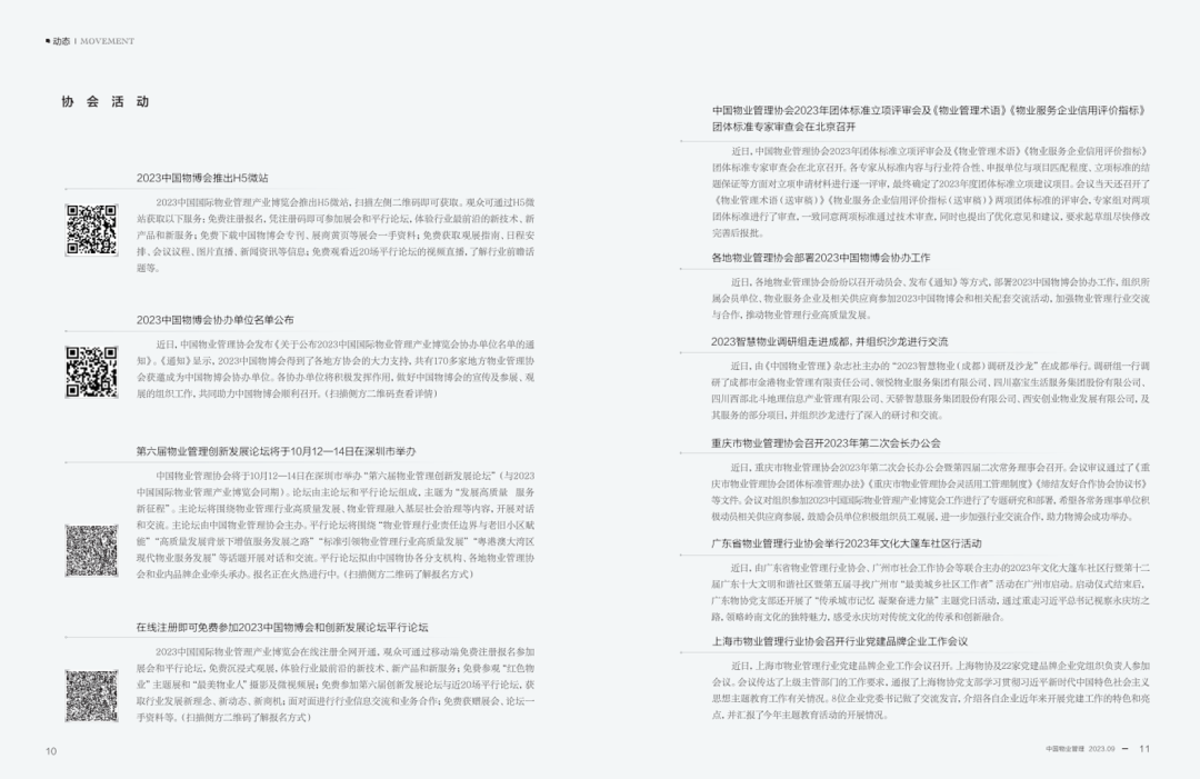 2023中国物博会推出H5微站;2023中国物博会协办单位名单公布;第六届物业管理创新发展论坛将于10月12—14日在深圳市举办;各地物业管理协会部署2023中国物博会协办工作等。