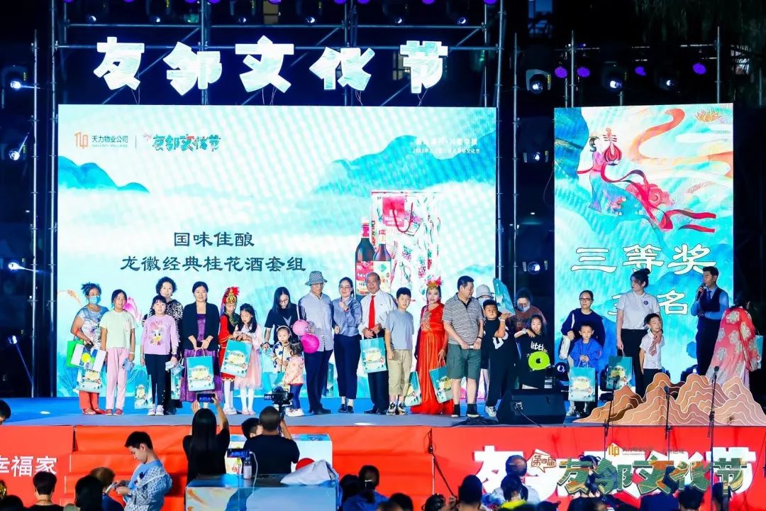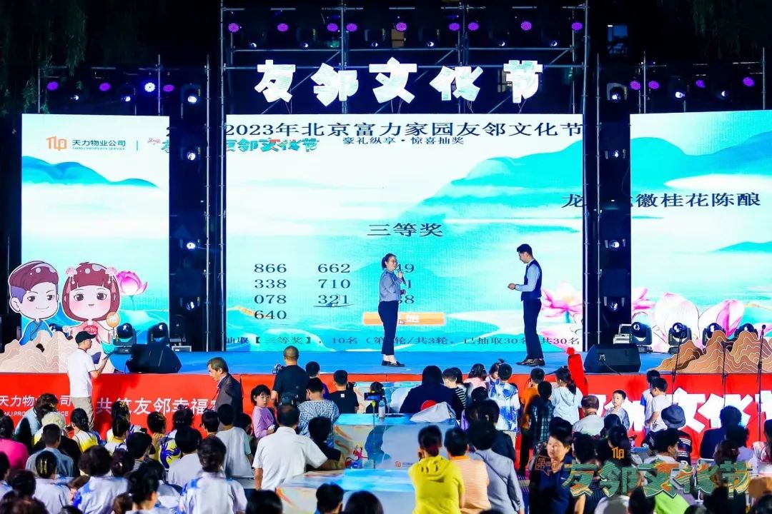 天|力|友|邻|文|化|节Friendship and Neighbor Culture Festival 传承文化 共享美好文化遗产 用心守护盛世繁华 文化自信月满中秋-MID-AUTUMN FESTIVAL- 是一场古风游园之旅, 在国风游艺中触摸千年文化印迹。“门庭若市满长庭,往来如织霓裳羽。”这描写的便是本次天力北京友邻文化节国风文展区“大师墨宝”云集国风拍照区为居民免费拍摄古风全家福灯笼与月饼DIY跟中秋佳节是绝配让小朋友们感受中华传统制作技艺的魅力桂花酒、中秋糕点等古风集市超多“适配美食”谁能忍得住“国风比武”超级好玩不管是老年人还是青年人特别是孩子们玩得不亦乐乎花好月圆-MID-AUTUMN FESTIVAL- 是一场文艺演出盛宴, 在联欢共庆中打造和谐美好社区。晚会演出将活动推至高潮小天小力的古风亮相让人眼前一亮国粹节目传承经典,京剧、黄梅戏在举手投足间将传统文化魅力展现得淋漓尽致变脸和小丑节目让孩子们惊呼连连居民文化团表演的乐器表演、乐团合唱、国风走秀等节目让我们感受到新时代社区居民积极向上的精神追求和谐美好的生活状态中秋快乐-MID-AUTUMN FESTIVAL- 是一场国货风采之展, 在品质与惊喜中感受大国自信。特别设置的抽奖环节让晚会气氛升至高潮幸运奖(40名)百年王茅·乾隆笔记酱香白酒 贵州百年王茅酱酒有限公司三等奖(30名)国味佳酿·龙徽经典桂花酒套组北京龙徽酿酒有限公司二等奖(10名)城市休闲·京津冀旅游一卡通华程国际旅行社集团有限公司一等奖(3名)我的农场·草原认养一只羊呼伦贝尔沃野食品文化有限公司特等奖(1名)国货之光·华为 Mate60手机天力物业北京区域公司抽奖环节不但给社区居民更多惊喜还让品质国货走进社区,走进百姓家中在国货品牌崛起中感受大国自信全力推动草原研学,文旅产业发展为国家经济发展贡献力量!活动会结束但美好永不落幕本次友邻文化节晚会至此圆满结束而天力物业人已经期待着下次相见届时,我们将为您准备全新的惊喜!>>>友邻文化节 美好永传续<<<