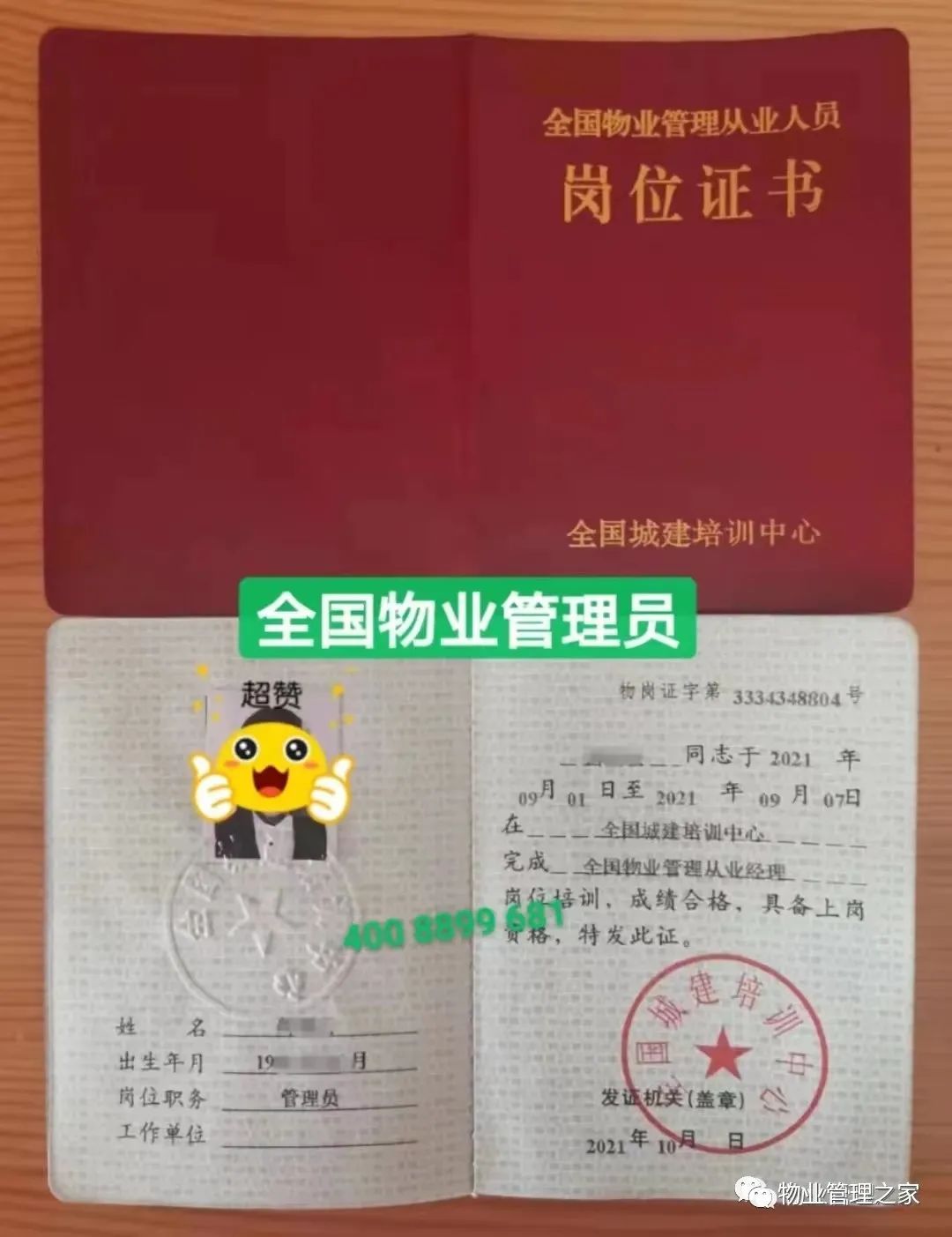 1、全国物业企业经理证(岗位证)