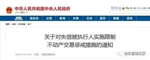 2018年3月16日,中国政府网重磅发布《关于对失信被执行人实施限制不动产交易惩戒措施的通知》,加大对失信被执行人的惩戒力度,采取限制不动产交易的惩戒措施。