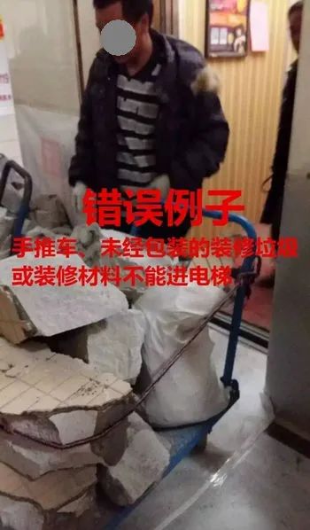 建议业主装修时,用大袋子把这些垃圾整理好,再放入电梯内。当然也要考虑一下电梯的承重,不要超载。