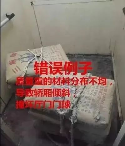 重力不均的装修材料堆积在电梯内,会使得轿厢倾斜,破坏电梯。