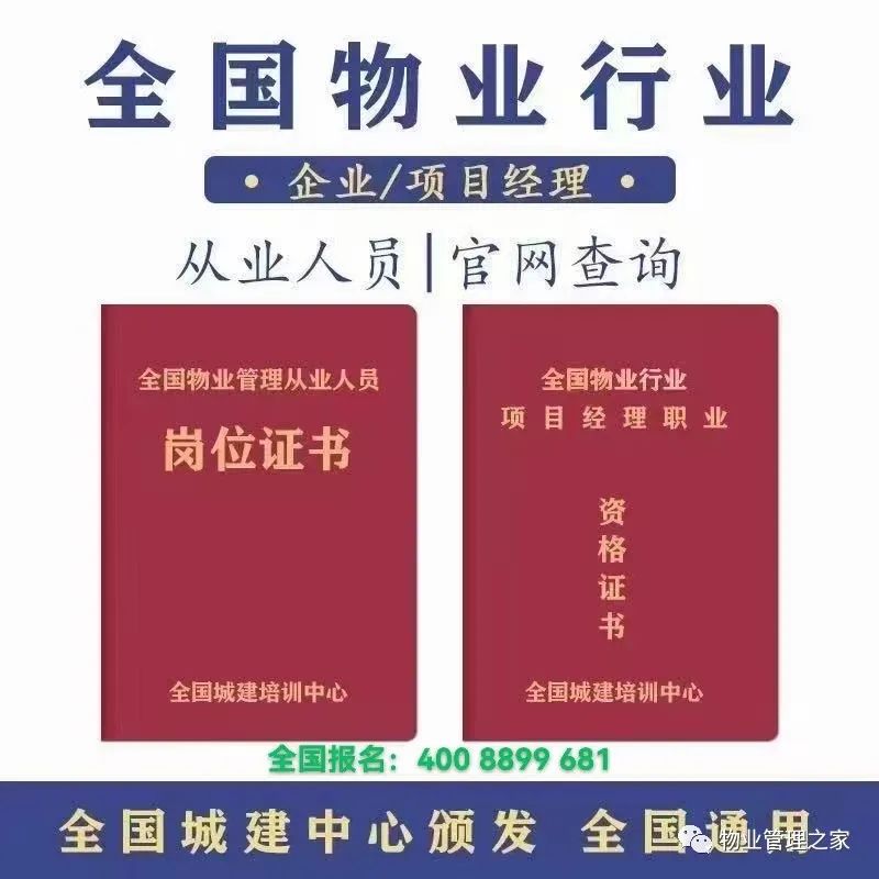 【证 书】参加课程的学员可申请优惠办理全国城建培训中心颁发的《全国物业行业项目经理职业资格证书》、《全国物业管理从业人员岗位证书(经理证书)》,证书全国通用、行业认可、网上公示。