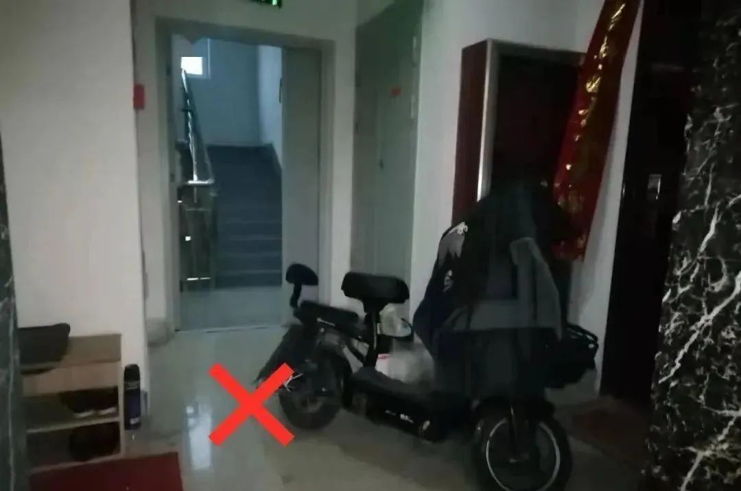 在公共走道、楼梯间、门厅内存放电动自行车或者为其充电;