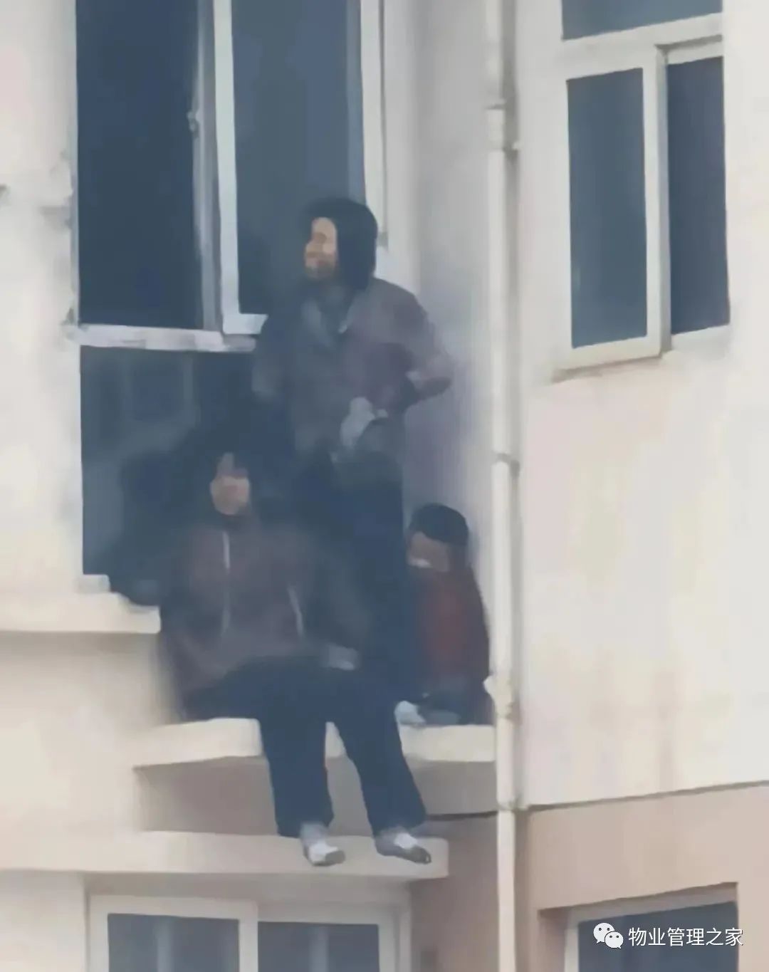 有住户站窗外等待救援