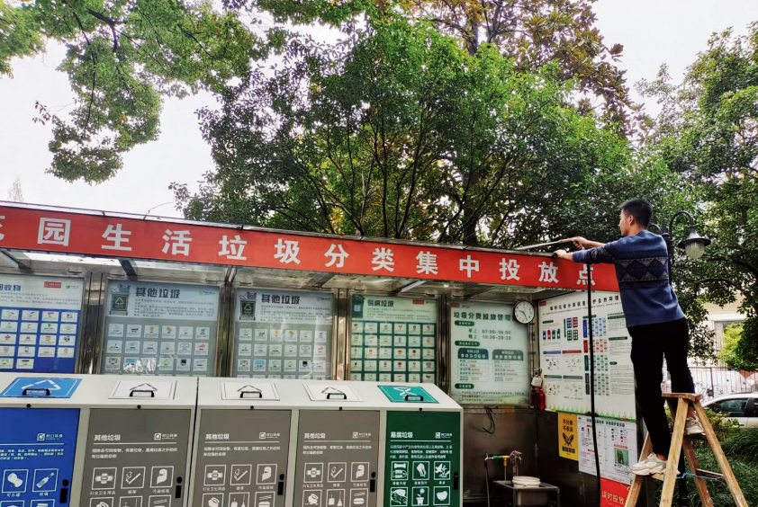 早在2018年,绿城服务成为公益机构阿拉善SEE浙江项目中心会员单位时,便以兰桂花园、之江一号、丁香公寓、杭州绿园、杭州留庄五个园区为试点,积极打造了可持续的城乡生活垃圾分类处理示范模板,构建全民绿色生态家园。到2019年6月,生活垃圾分类制度入法,兰桂花园顺势先行,在业主与业委会的支持下,协同撤销小区28个单元楼道、27幢别墅门口的全部垃圾桶,在小区南北主干道上设立2个垃圾集中投放点,正式开始推行定时定点投放垃圾。