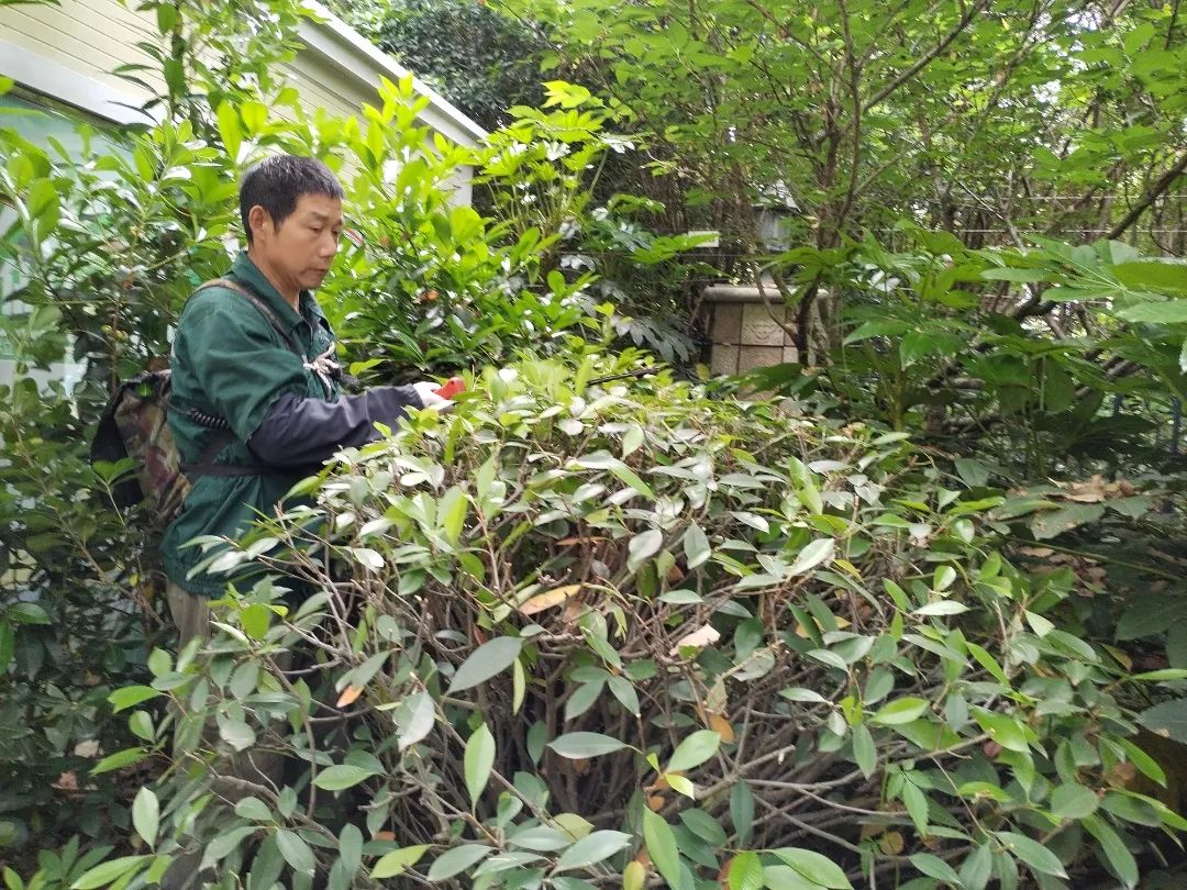 绿化工王师傅平时工作认真,不怕苦不怕累,他说有时候提着绿化修剪工具体力上虽然有点累,但每次完成绿化修剪、养护后看到小区环境焕然一新自己也会开心一整天。