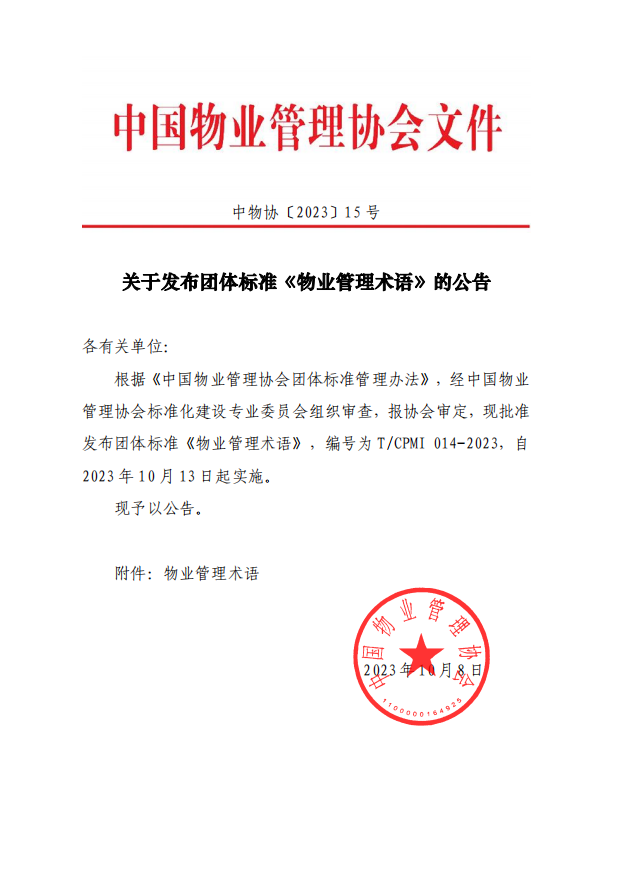 《物业管理术语》(T/CPMI 014-2023)作为行业重要的基础性标准,能为物业经营活动提供概念统一、定义明晰的文件依据,并作为各相关方知识与信息交流的通用语言。