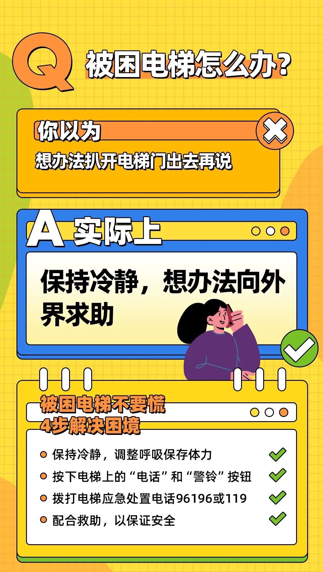 被困电梯不要慌,以下4步措施可解决当前困境: