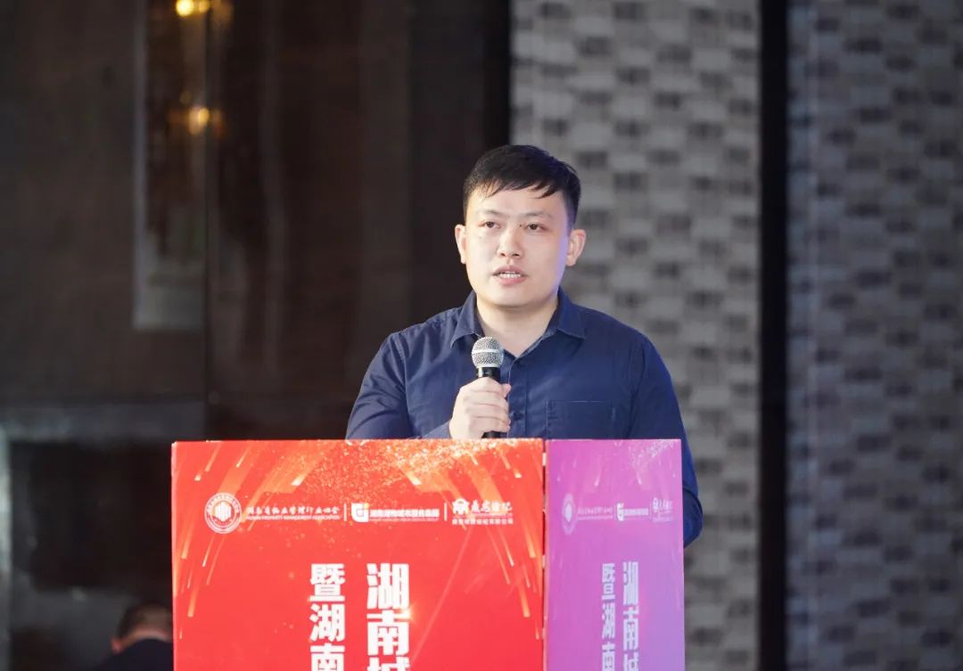 湖南辚辚科技有限公司总经理黄诚解析了数字化、智能化在物业管理行业的应用,表述了智慧物业已成为物管行业的发展趋势,成为提升居民幸福感、获得感的重要一环。